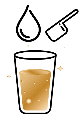 Mix two scoops (10 g) of Golden Collagen with 150 ml of water.