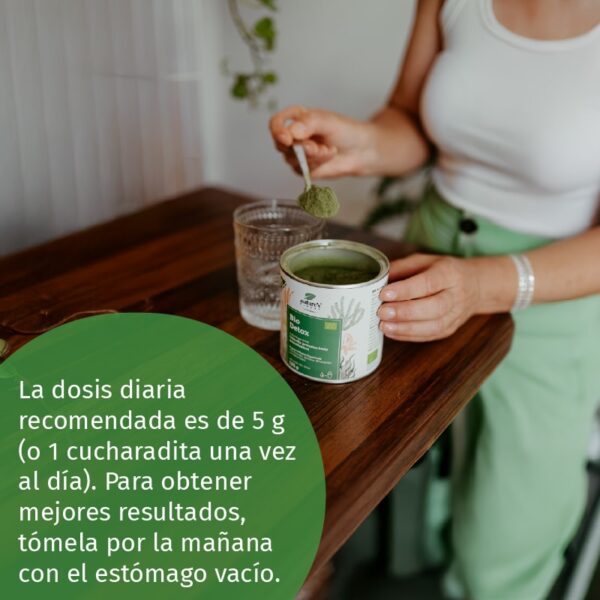 La dosis diaria recomendada es de 5 g (o 1 cucharadita una vez al día). Para obtener mejores resultados, tómela por la mañana con el estómago vacío. Para mejorar el sabor, puede mezclarla con jugo recién exprimido de limón o naranja, o con agua.
