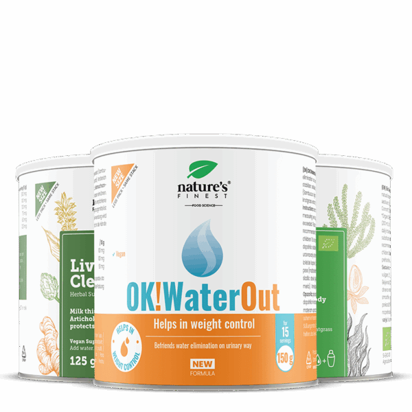 El paquete combina 3 complementos con potentes extractos naturales que te ayudan a lograr vitalidad y desintoxicación⁶, pérdida de peso⁵ y eliminación de agua a través del sistema urinario⁴.