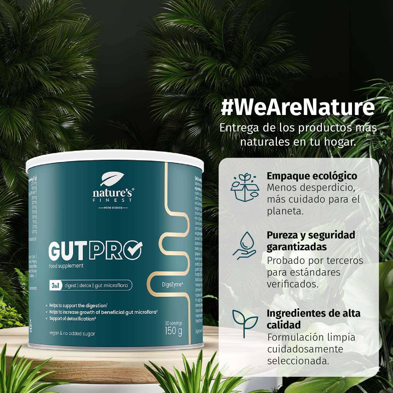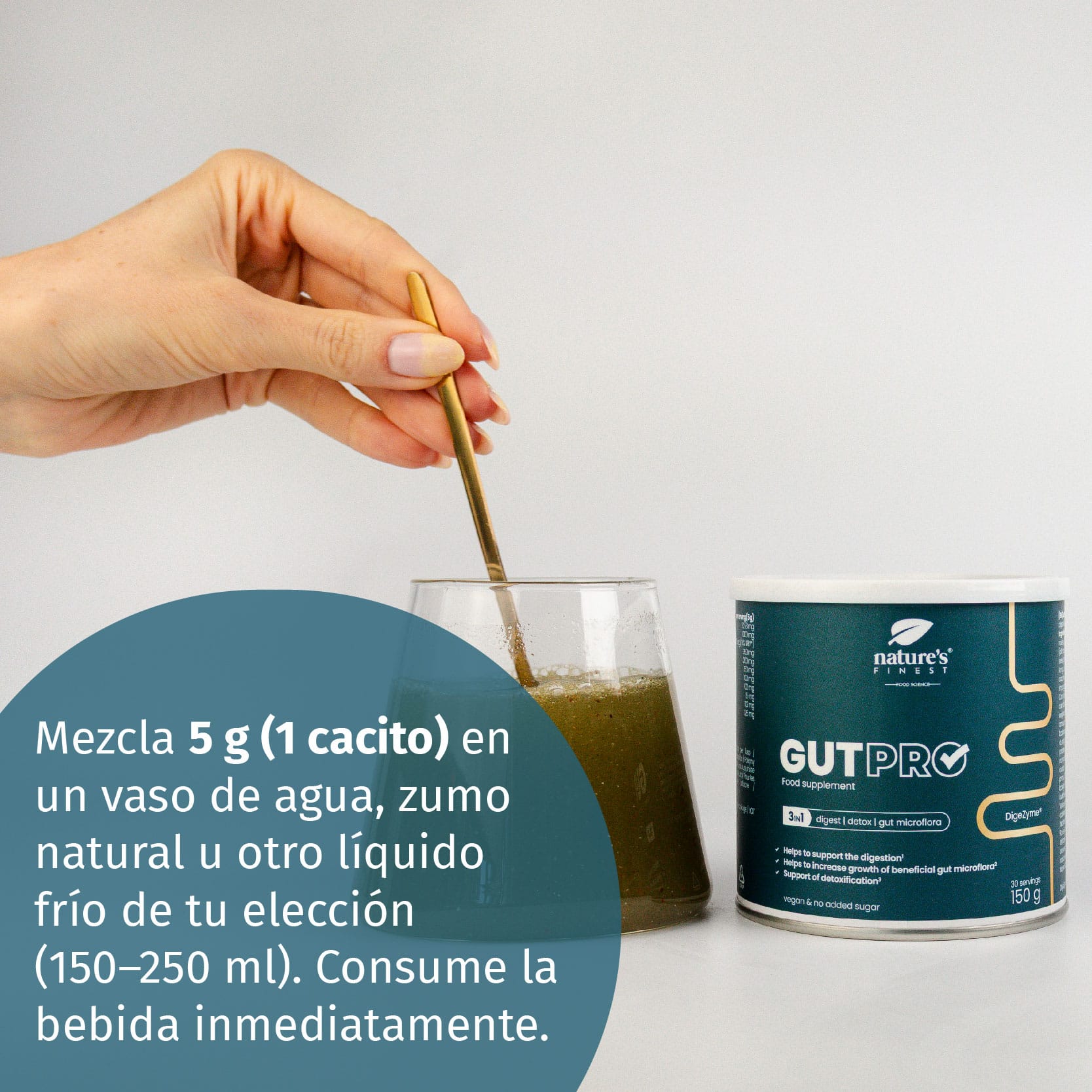 Esta no es una solución rápida, sino una fórmula de alta calidad con un efecto duradero. GutPRO combina la digestión⁷, la desintoxicación³ y el apoyo a la microflora intestinal³ en una fórmula fácil de usar, para que puedas mantener una dieta constante.