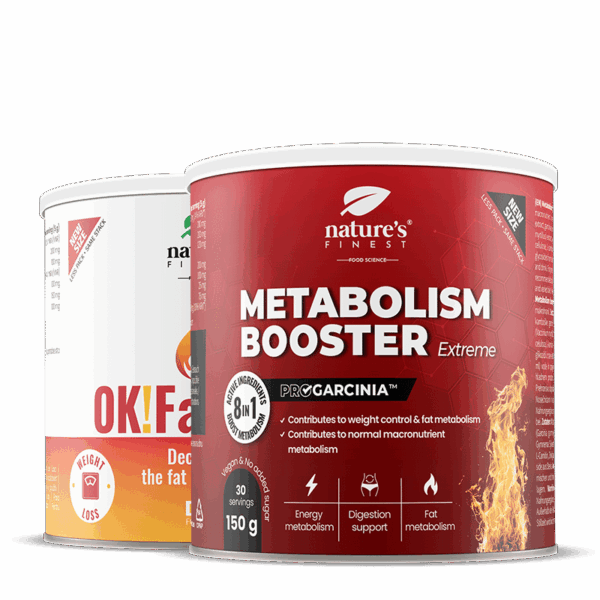 ANTES DEL ALMUERZO: 5 g (1 cacito) de Metabolism Booster Extreme y 5 g (1 cacito) de Ok!Fatburn, mezclar en 300 ml de agua y beber.