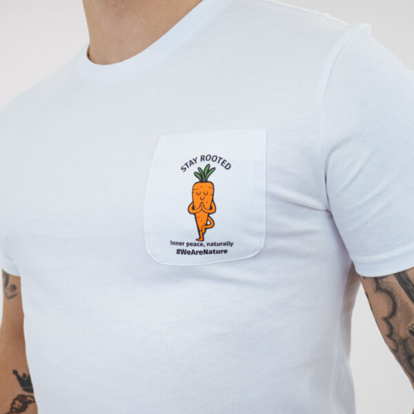 Una camiseta blanca minimalista que equilibra estilo y serenidad. Con la frase “Stay Rooted, Inner Peace, Naturally” en un gráfico limpio y discreto, aporta un aire tranquilo y seguro a cualquier conjunto.