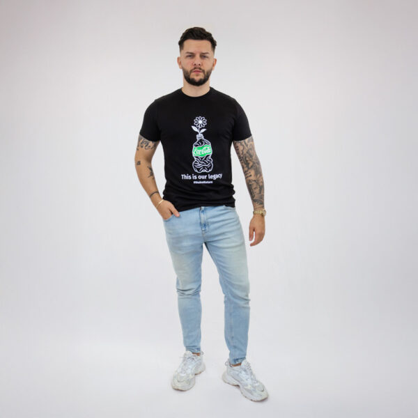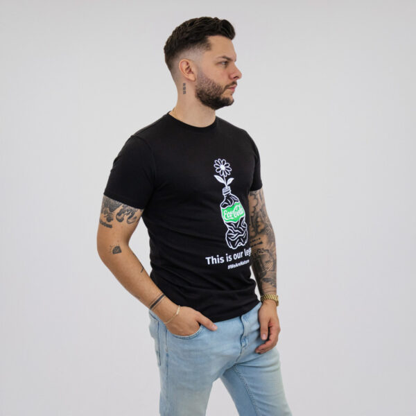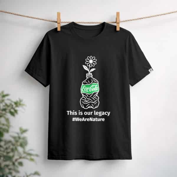 Una elegante camiseta negra que combina estética y significado. Con una llamativa ilustración blanca de una flor que crece de una botella aplastada con un vibrante acento verde, transmite un poderoso mensaje medioambiental con un arte sutil. Suave, cómoda y fácil de llevar, esta camiseta es perfecta para quienes aprecian un diseño con intención y quieren causar un impacto silencioso pero firme.