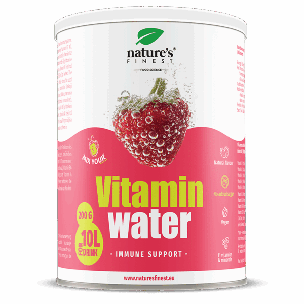 Vitamin water Immune support es una bebida refrescante con sabor a fresa.
