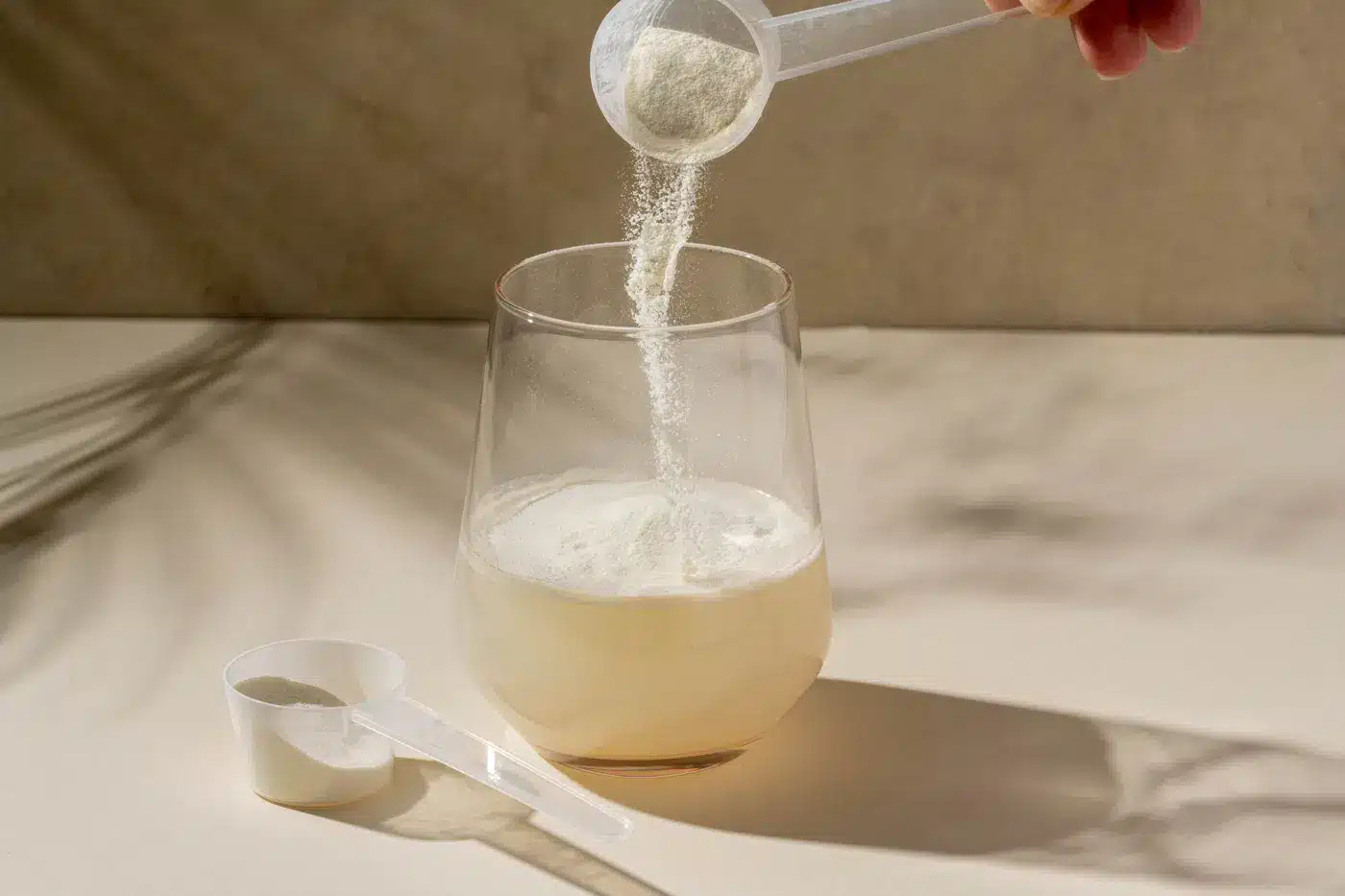 Añade 5 g de cada producto (Vitamina C, Magnesio, Calcio, Complejo B y Vitamina D3) a un vaso de agua, mezcla bien y bébelo.
